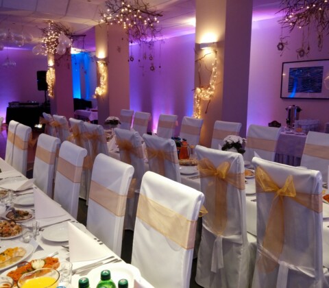 - białe pokrowce na krzesła w cenie menu;