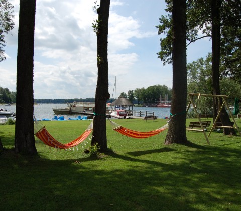 Zapraszamy na wakacje z rodziną do Mazurskiej Europy, do wspólnego odpoczynku w otoczeniu natury. Tutaj każdy znajdzie coś dla siebie: plażę z leżakami, sprzęt wodny – rowery wodne, kajaki i łodzie wiosłowe – a także kilka rowerów turystycznych na krótkie wycieczki po okolicy. Dla tych, którzy lubią spacery, mamy również kijki do nordic walkingu.